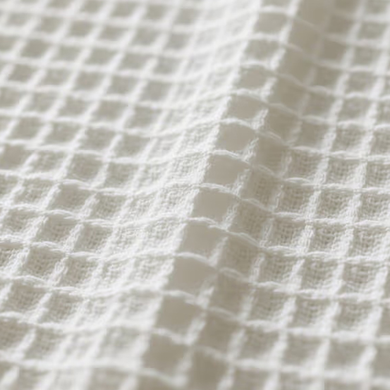 Waffle Knit Comfort Fabrics ist ein Stoff, der mit einer einzigartigen gitterartigen konkav-konvexen Textur gewebt ist. Seine Oberfläche hat die Form einer Waffel, die eine hervorragende Atmungsaktivität und eine hervorragende Schweißabsorption aufweist. Durch diese Struktur kann das Gewebe Feuchtigkeit effektiv absorbieren und Schweiß schnell ableiten, sodass die Haut trocken bleibt. Es eignet sich zum Tragen bei hochintensivem Training und kann Schweiß schnell absorbieren und verdunsten, um Komfort während des Trainings zu gewährleisten. Die Leichtigkeit und Weichheit des Waffelstrickstoffs sorgen für einen hohen Tragekomfort im Sommer. Es wird häufig bei der Herstellung von Sommerhemden und anderer Kleidung verwendet, um den Körper bei heißem Wetter kühl zu halten. Aufgrund seiner guten Atmungsaktivität und schweißableitenden Funktion eignet sich dieser Stoff hervorragend zur Herstellung von Sporthandtüchern, um Sportlern dabei zu helfen, den Schweiß schnell abzuwischen und während des Trainings trocken zu bleiben.
